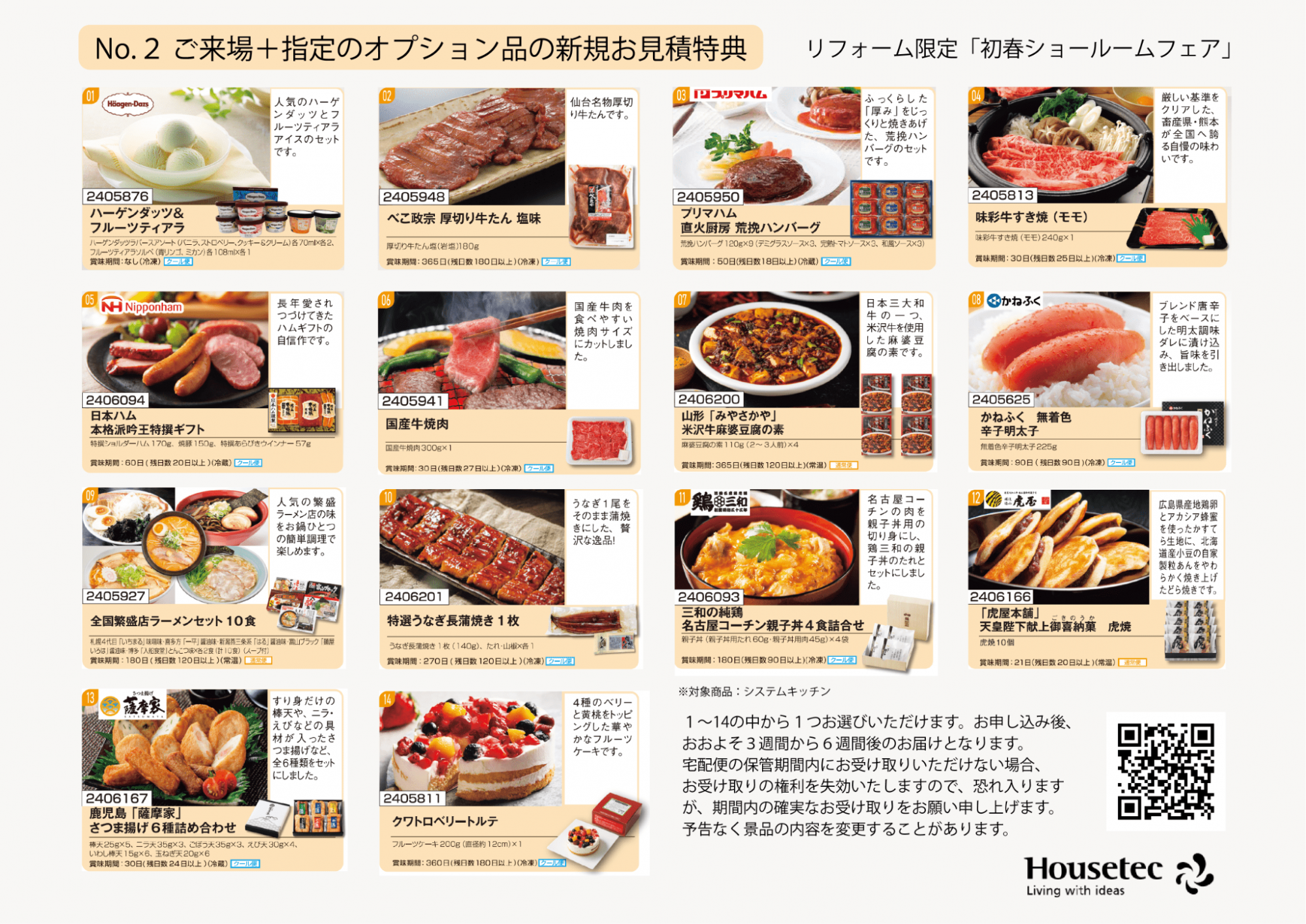 ・NO.2 ご来場+指定のオプション品新規お見積特典: