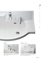 20ℓの大容量ボウルが水の飛び散りを抑えるので、洗顔はもちろん、部分手洗いなどの家事が快適に行なえます。水栓取り付け面に45度の傾斜を設けました。水たまりができにくく、汚れにくい工夫です。傾斜水栓大容量ボウル(20ℓ)11ラヴァーボ プラスQVシリーズ資料集ラヴァーボ