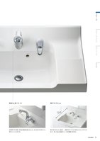 奥行きは55cmに設計。一般的なサイズより約5cmコンパクトなので、ゆとりある洗面スペースを確保できます。傾斜水栓(エコ)奥行き55cm55cm水栓取り付け面に45度の傾斜を設けました。水たまりができにくく、汚れにくい工夫です。9ラヴァーボ プラスQVシリーズ資料集ラヴァーボ