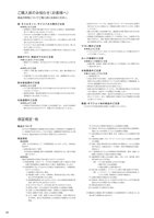 ご購入前のお知らせ(お客様へ)商品の特性についてご購入前にお読みください。扉、キャビネット、サイドパネル類のご注意◦使用上のご注意◦長期間のご使用で扉の緩みやがたつきが生じた場合は、取扱説明書に従って丁番のネジをしめなおしてください。◦水がかかったまま放置すると膨れたり表面シートがはがれるおそれがあります。乾いた布でふき取ってください。◦濡れ布巾などを扉やサイドパネルに掛けると、木口が膨れたり反りの原因になるおそれがあります。◦キャビネットなどに油が付着したまま放置すると染みになります。乾いた布でふき取ってください。◦長期間ご使用いただくと直射日光などの影響で色合いが変わることがあります。樹脂ボウル、陶器ボウルのご注意▪購入にあたってのご注意◦樹脂ボウルの表面は、光の当たり方でツヤの違いが見えることがあります。◦使用上のご注意◦化粧ビンや硬く重い容器などを落としたりすると、割れ・傷の原因になります。◦水滴が残っていると水垢の原因になります。また、長期間お手入れをしないと水垢がとれなくなるおそれがあります。排水部品類のご注意◦使用上のご注意◦ヌメリ取り剤を使用するとさびや水漏れのおそれがありますのでご使用にならないでください。◦塩素系洗浄剤、漂白剤を使用するとさびや水漏れのおそれがあります。使用後は十分に洗浄してください。化粧鏡類のご注意◦使用上のご注意◦化粧品や毛染め液などが付着したまま放置すると、本体や化粧棚が割れるおそれがありますので、放置せずに拭き取りをしてください。◦蛍光灯やグローランプは、消耗品ですので、チラつきや点灯に時間が掛かるようになった場合には、市販品をお買い求めていただき、交換をしてください。◦鏡に水が付着したまま放置すると、鏡面部分が黒く変色するおそれがありますので、放置せずに拭き取りをしてください。◦直管型LED照明器具には専用のランプを使用しており、お客様での交換はできません。交換・修理が必要な場合は本カタログP61記載のお客様ご相談窓口または、お買い求めの販売店にご相談ください。ワゴン類のご注意◦使用上のご注意◦ワゴンにはキャスターが付いていますので床材によっては傷が付きやすいので注意してください。ロック機構のご注意▪開扉ロック機構のご注意◦設置状態、収納物、振動の状況等によっては性能を十分に発揮できない場合があります。水栓関連のご注意▪購入にあたってのご注意◦一般家庭用です。◦水栓に使用できる水質は、水道水及び飲用可能な井戸水です。但し、使用できる水質をご使用されていても水垢や緑青などで機能障害・止水不良・温度調節不良などのおそれがあります。◦寒冷地では寒冷地仕様のものをご使用ください。◦給湯・給水圧の確認を行ってください。特に電気温水器などで水圧が足りない場合は、加圧ポンプの設置などをお願いします。◦混合水栓を使用する場合、給水圧力は給湯圧力より必ず高くするか同圧にしてください。また、湯側を加圧する場合でも必ず湯側圧力を水側より低くしてください。機器、オプション他の商品のご注意※カタログの各商品説明に記載のご注意もごらんください。製品について本カタログ掲載製品の性能値は当社が想定した使用条件での試験値であり、保証値ではありません。これらの値は、設置環境や使用状況により変わります。製品は改良のため予告なく変更することがあります。保証規定保証期間お買い上げ日を起点として、下記期間保証いたします。ただし、消耗品は除きます。◦洗面化粧台本体:1年間 ※本体組込み機器類に関する保証期間、保証条件などは、個々の保証書によります。品質保証商品の品質保証の内容は下記の通りとさせていただきます。(1)取扱説明書、本体ラベル、その他の注意書きに基づく適正なご使用状態で保証期間中に故障が発生した場合、無償修理をいたします。(2)保証期間中であっても次のような場合には適用を除外し、有償修理とさせていただきます。1)保証書のご提示がない場合。2)保証書にお買い上げ日、お客様名、販売店名の記入がない場合、または字句を書き換えられた場合。3)保証期間経過後に申し出があったもの、または保証該当事項の発生後、速やかに申し出がなかったもの。4)仕上げのキズなどで、お引き渡し時に申し出がなかったもの。5)使用上の誤り、または改造や不当な修理による故障及び損傷。6)お買い上げ後の設置場所の移動、分解等による故障及び損傷。7)取付・設置の不注意、過失による故障及び損傷。8)火災、地震、水害、落雷その他の天災地変、公害や異常水圧及び燃料、給水の供給事情による故障及び損傷ならびに自然消耗。9)ねずみなどの動物や昆虫などによる故障及び損傷。10)温泉水・井戸水など水道関連法令に定める飲料用水水質基準に適合しない水を使用したことによる故障及び損傷。11)指定規格以外の条件(電源・水圧・水質など)によ