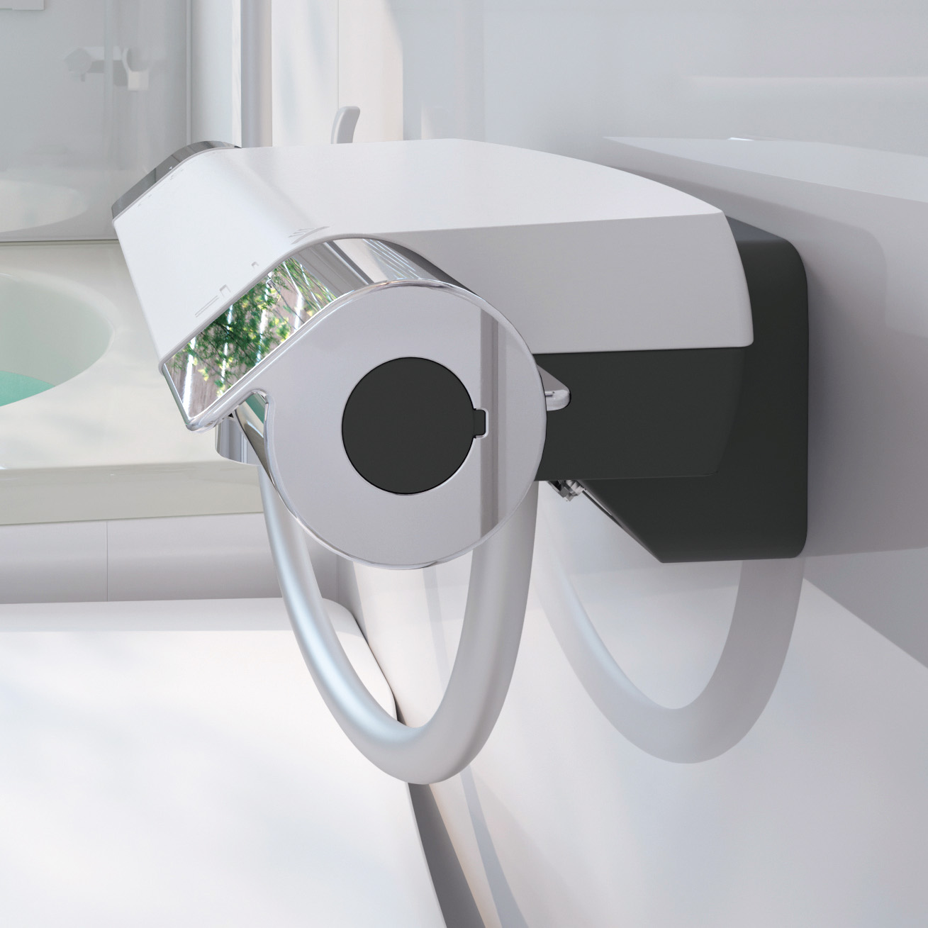 壁との接触面を一段下げることで本体が壁からはなれ、まるでういているようなデザインに。