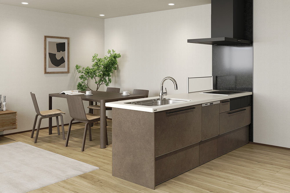 リビングやダイニング側とのコミュニケーションがとりやすい人気の対面キッチン。奥行き75cmのワイドカウンターなら今までのスペースも開放的な対面キッチンが実現します。