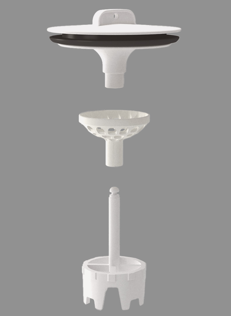 ゴム栓チェーンがないためすっきりとした印象に。止水する際は少し持ち上げ、約45度回して置き直します。