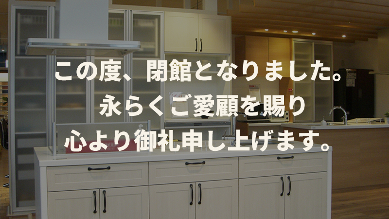 長い間ご愛顧を賜りました事に心より御礼申し上げます。 今後は岡山ショールームへのご来場をお待ちしております。