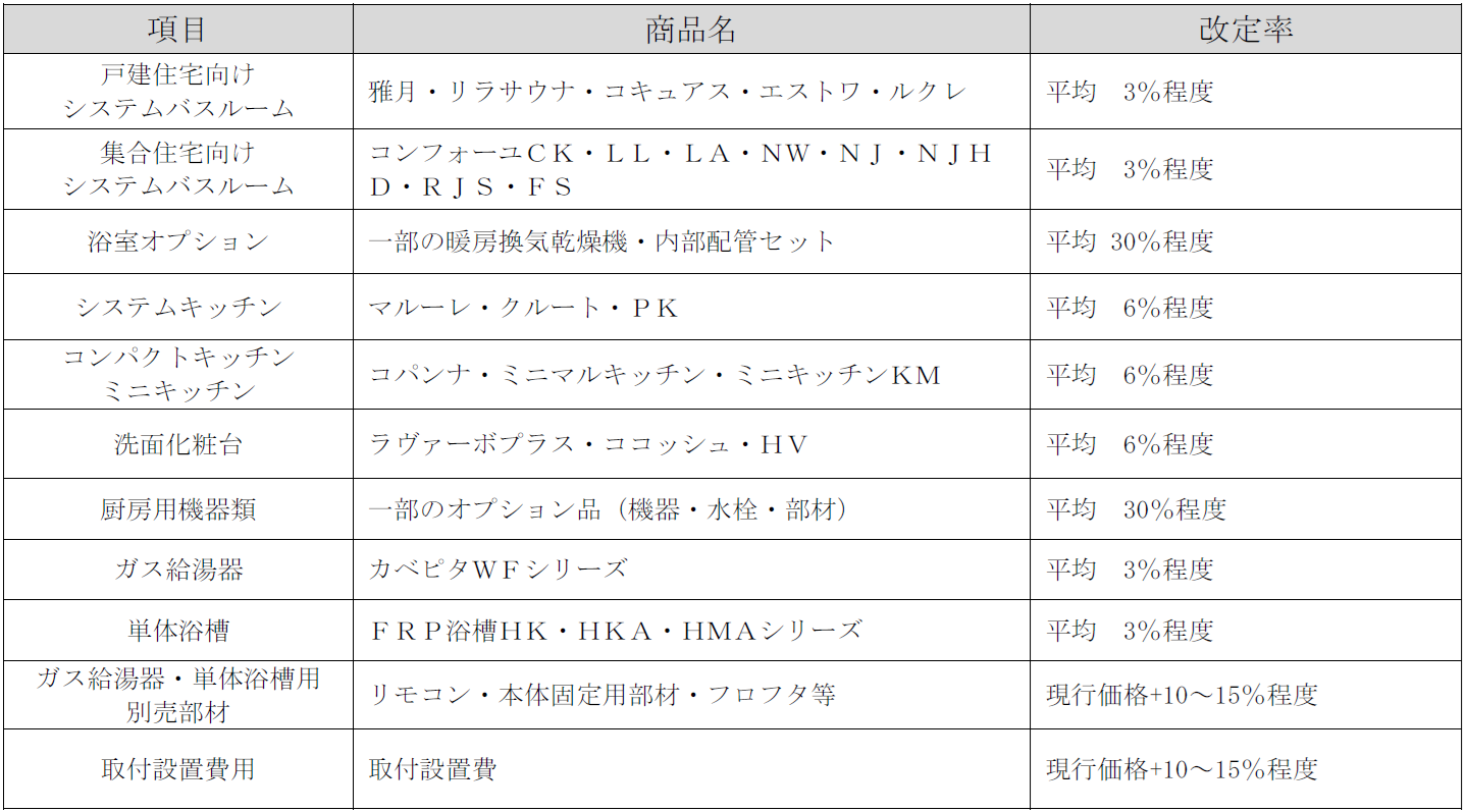 つきましては、誠に不本意ではございますが、下記の通り、メーカー希望小売価格を改定させていただきたく存じます。