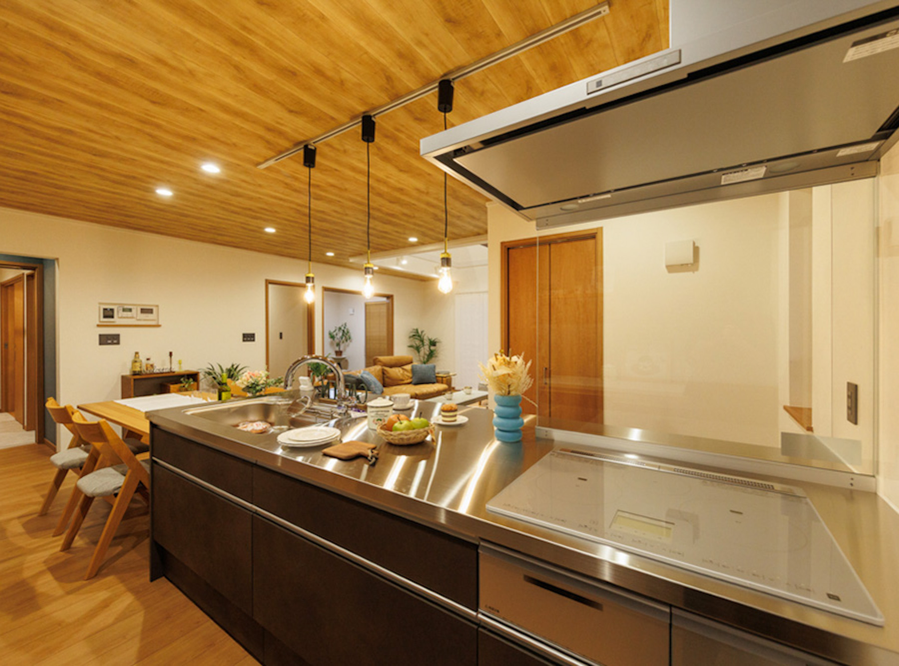 ご夫妻とも料理が好きなので、「せっかくならお客様に腕を振る舞いたい」という強い願いがあり、広くて使いやすいキッチンを探していました。そんな時に出会ったのが、この「マルーレ」です。他メーカーのキッチンともたくさん比較検討されましたが、最終的な決め手となったのは、他にはない広々とした開放感と、美しいステンレスのワークトップの上質感でした。