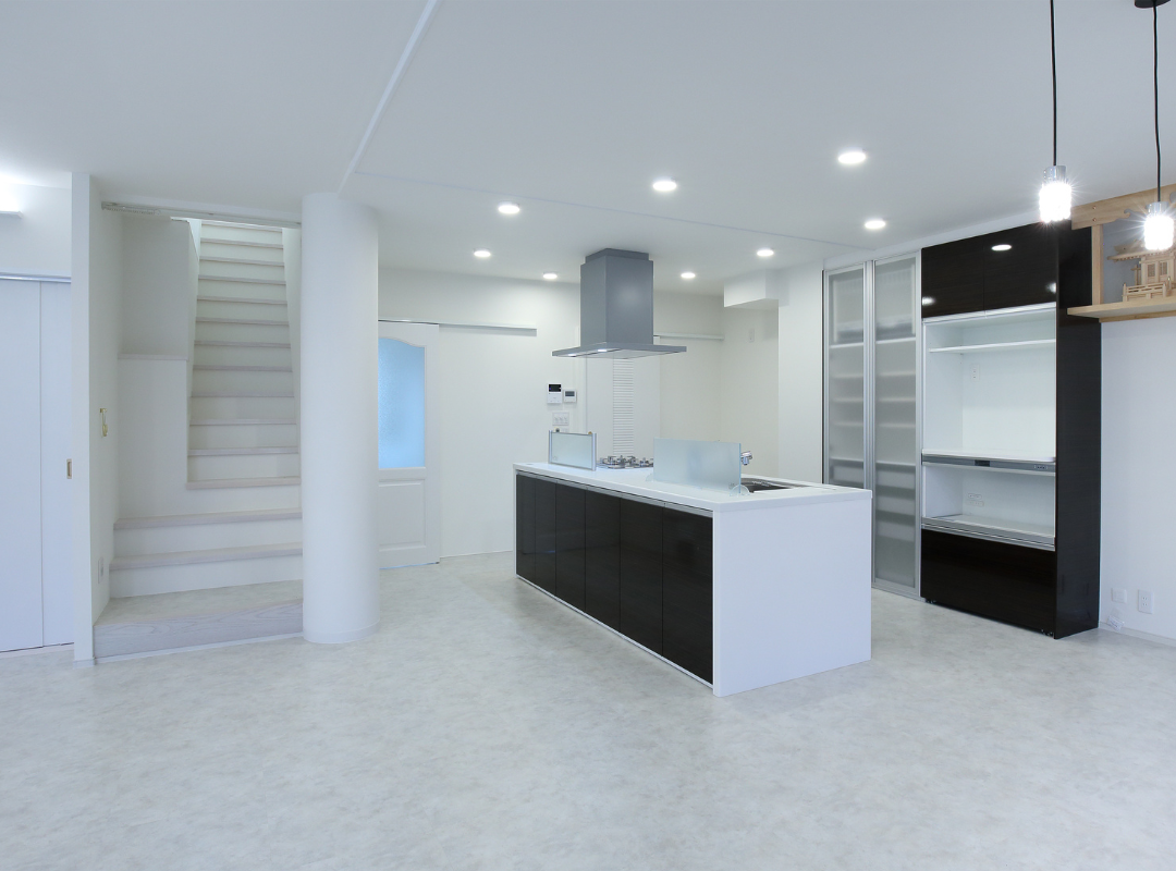 奥様の永年の夢「アイランドキッチンにしたい」を叶えられるよう、ホテルライクをコンセプトとして、白を基調にリフォームを行いました。