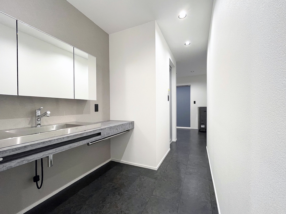 敢えてカウンターや棚などは付けず、鏡も付けませんでした。余分なものを付けない分、