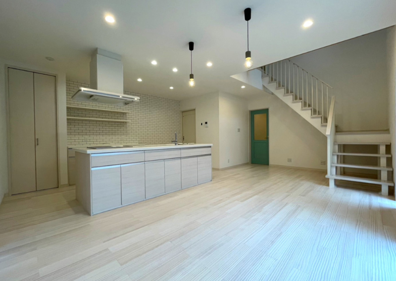 キッチンの向かって左にはくつろぎの場として和室を、向かって右奥には洗面脱衣室と浴室を配置し、LDKを中心とした生活動線となるよう工夫しました。